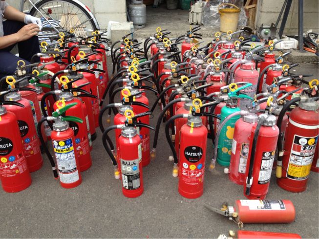 回収した古い消火器を見ると