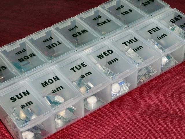 クスリのケースに間違いのないように入れている姿は