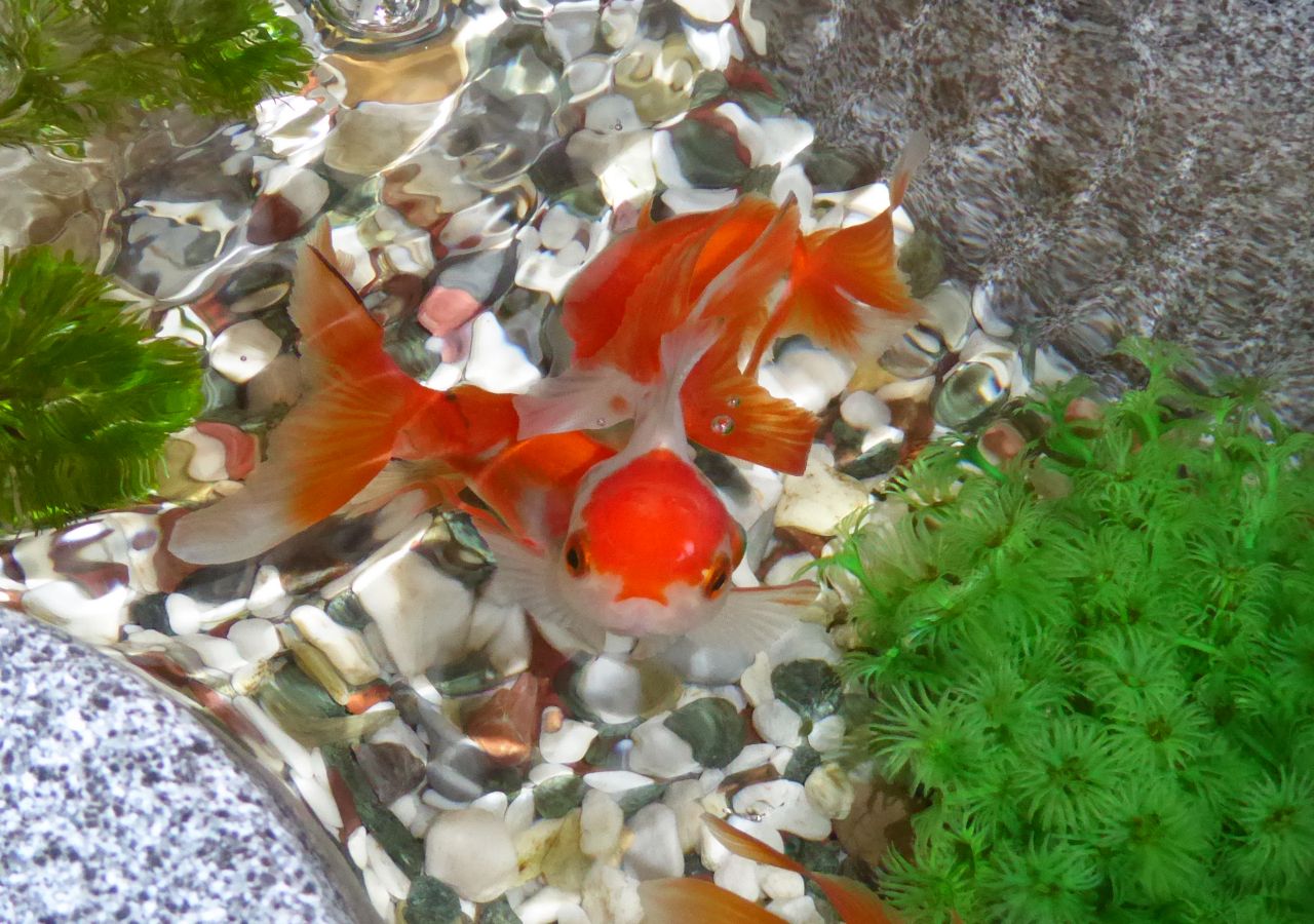 ウチで飼っている金魚が可愛いんです 特に 写真のモモちゃん 他の金魚は手を出すと すぐ逃げますが この金魚だけは寄ってきます 撫でるコトもできます。