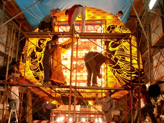 地元のねぷた小屋のペンキ塗り。